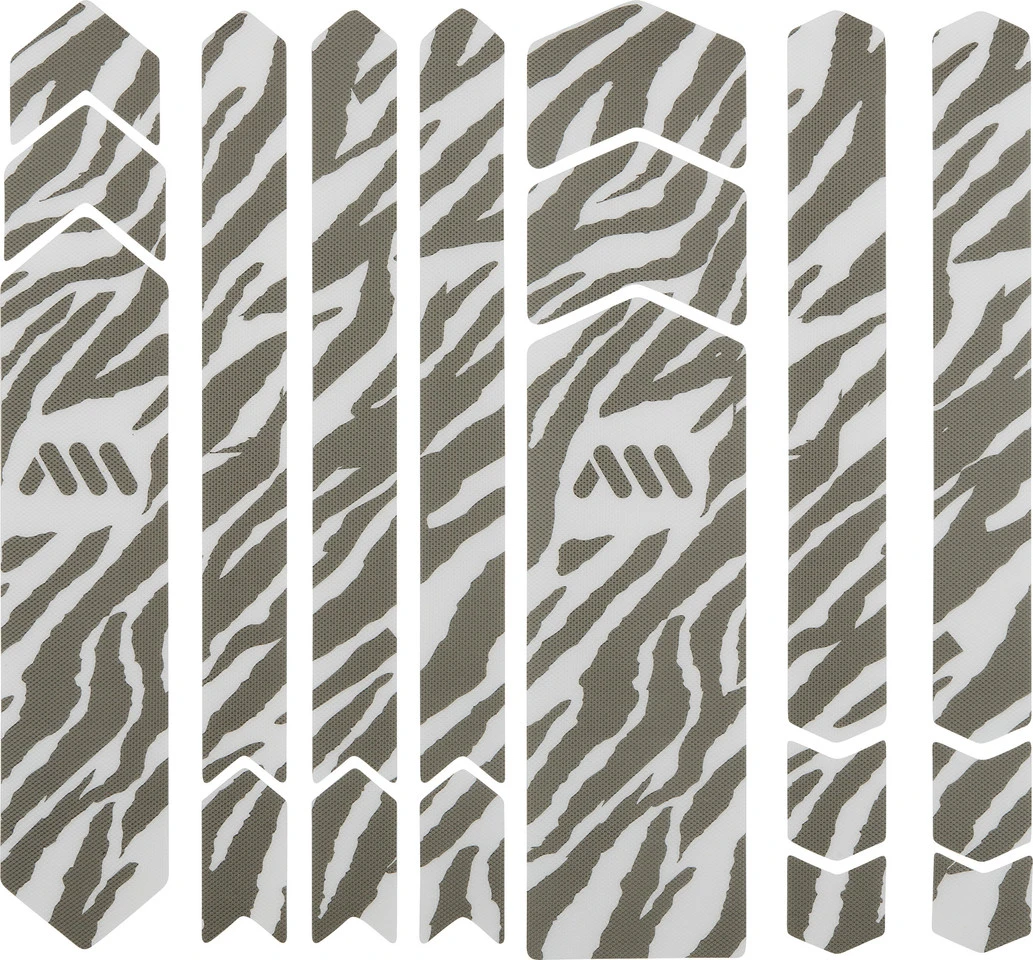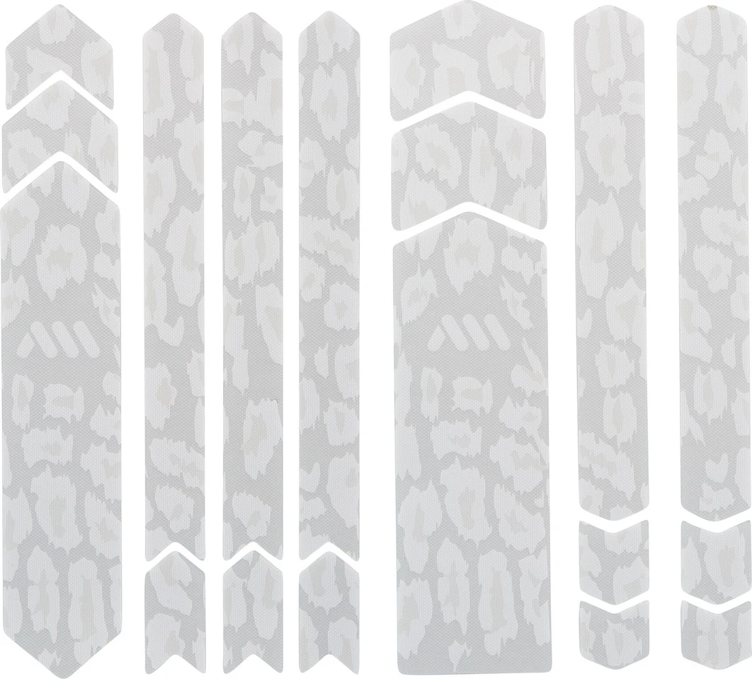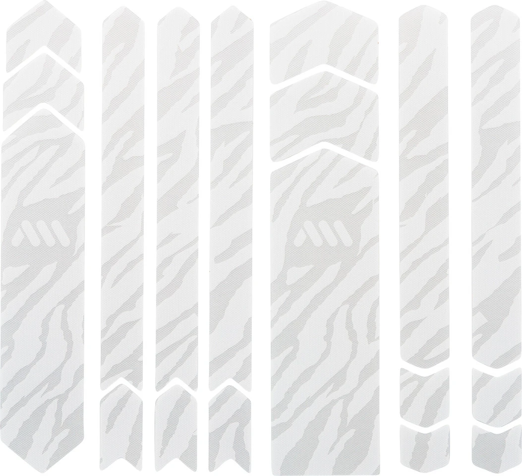 Features:universelles Rahmenschutzsystem aus 8 Teilen: Unterrohr, seitliches Unterrohr, Oberrohr, Streben und Pfeile zur Erweiterung und gegen KabelverschleißDeine Lösung wenn Du Dir für Dein E-MTB oder Dein Downhill-Rad eine vollständige Abdeckung wünschstverhindert Beschädigungen und Kabelabrieb am Rahmen380 Mikrometer halbsteifes PVC in Wabenform bietet Dir hohe Schlag- und Scheuerfestigkeit bei minimalem Gewicht (48 Gramm)Materialien, die nicht mit der Zeit vergilbeneinfache, universelle Montage, selbst in schwierigen WinkelnHerstellernummern:camo:AMSFG5CLCMclear:AMSFG5CLSVsuper rider black:AMSFG5SRBKzebra grey:AMSFG5ZBGYzebra white:AMSFG5ZBWHcheetah grey:AMSFG5CHGYcheetah white:AMSFG5CHWHFarbinfo:camo:transparent, grau mit Camouflage-Mustersuper rider black:transparent, schwarz mit MTB-Elementenzebra grey:transparent, grau mit Zebra-Musterwhite zebra:transparent, weiß mit Zebra-Mustercheetah grey:transparent, grau mit Cheetah Mustercheetah white:transparent, weiß mit Cheetah MusterLieferumfang:1 x Rahmenschutzaufkleber-Set All Mountain Style Frame Guard Full