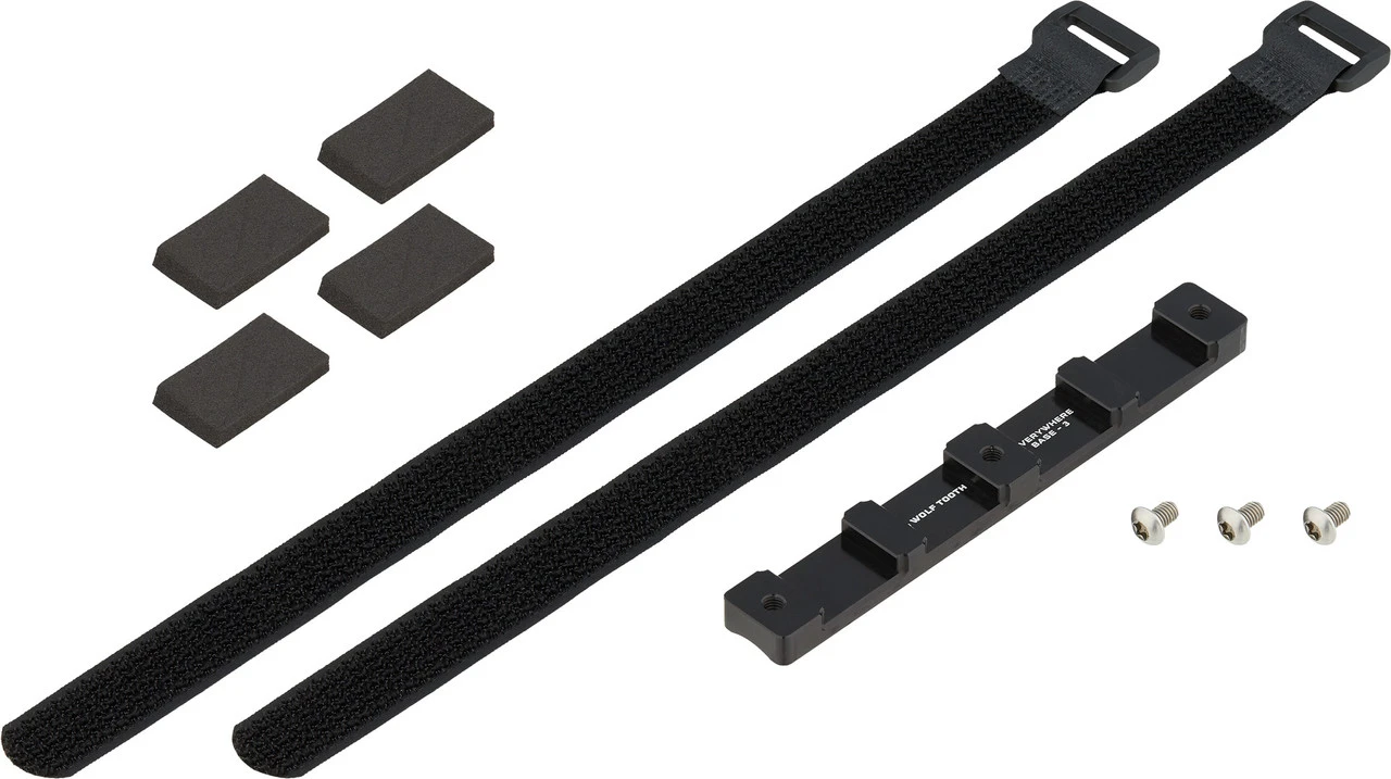 Die B-RAD Everywhere Flaschenhalter-Halterung von Wolf Tooth Components befestigst Du mit Klettriemen an einer beliebigen Stelle am Fahrradrahmen. An der 2- oder 3-Loch-Aufnahme der Platte montierst Du dann einen Flaschenhalter mit entsprechendem Lochmuster. So bekommst Du selbst an Rahmen mit beengten Platzverhältnissen problemlos eine Trinkflasche unter.
