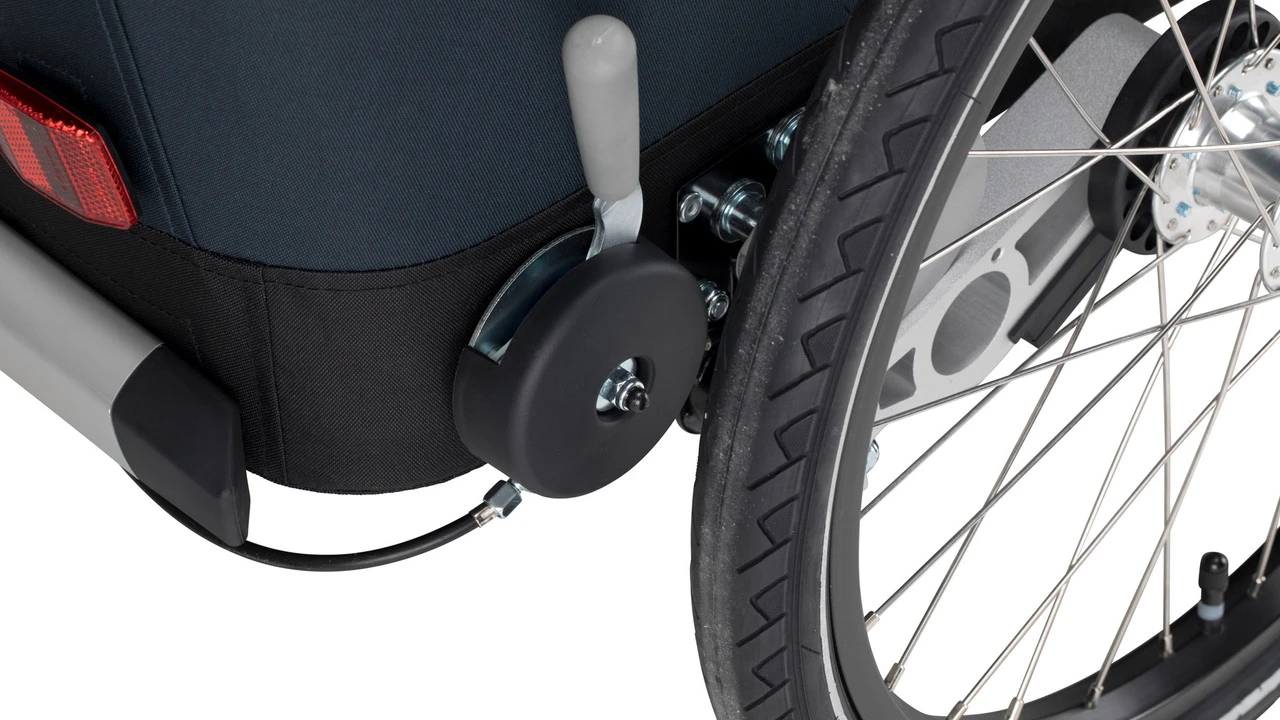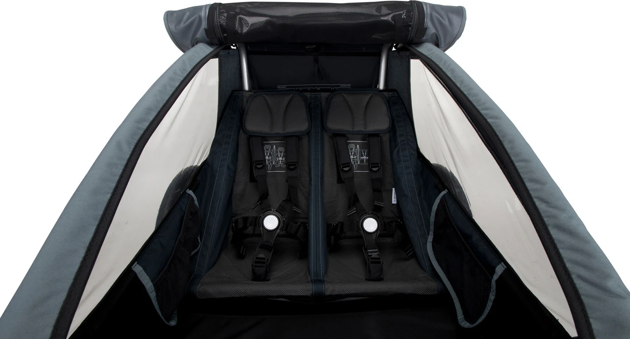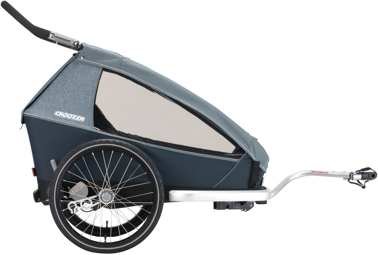 Spezifikationen:Ausführung:KinderanhängerLaufradgröße:20″Sitzplätze:2Technische Daten:Bremse:handbetätigte FeststellbremseFederung:JaMaße (HxBxT):90 x 80 x 110 cmMaße zusammengeklappt (HxBxT):79 x 28 x 106 cmVolumen Stauraum:52 LiterRahmenmaterial:AluminiumFreigaben:Zuladung max.:45 kgStützlast max.:8 kgFeatures:integrierte Beleuchtung im SchiebebügelBuggyrad mit Vollgummibereifungschadstoffgeprüftes Materialergonomisch geformte Sitze aus atmungsaktivem climatex Materialautomatische AirPad Federungreflektierende Markierungen an Fahrgastzelle mit ÜberrollbügelUPF 80+ bei Fensterfolie und Regenscheibeeinfache Bedienung dank Click & Crooz Systemgepolstertes 5-Punkt-Gurtsystem (Easy Pull)höhenverstellbarer SchiebebügelGepäckfach mit 52 LiternTechnologien:climatex: