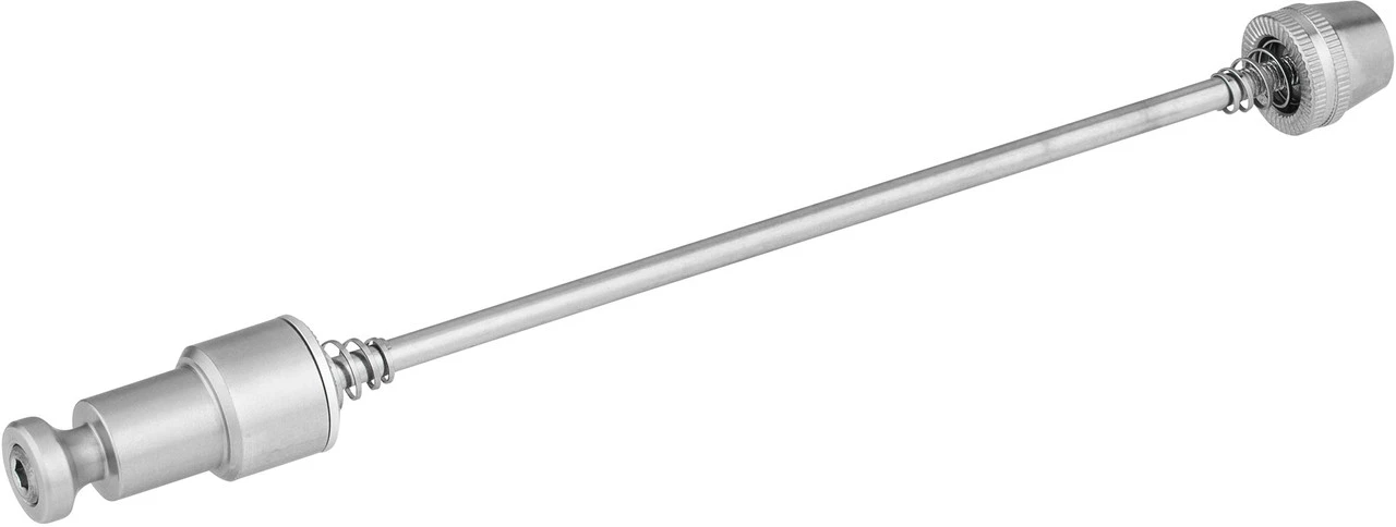 Spezifikationen:Einbaubreite:145 mmAchsdurchmesser:5 mmTechnische Daten:Typ:Schnellspanner, RWSMaterial Achse:EdelstahlKlemmweite:148 – 158 mm, 158 – 168 mmFeatures:integrierte Click & Crooz Kupplung (15 mm Sockel)abschließbarAusführungen:148 – 158 mm: