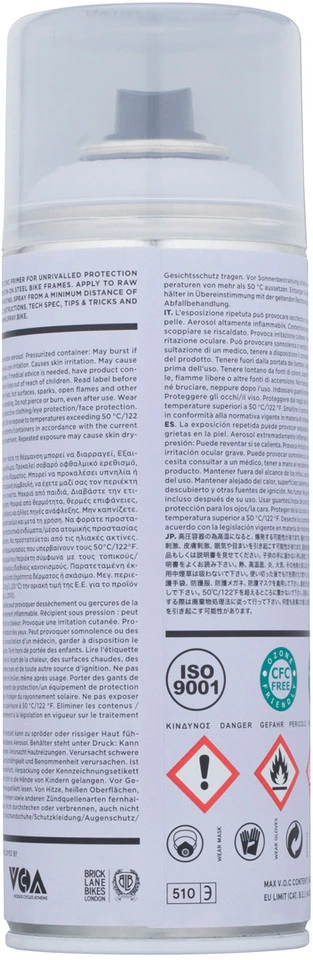 Die Frame Builders Cold Zink Grundierung von Spray.Bike ist eine transparente Grundierung, die speziell für rohe Stahlrahmen entwickelt wurde. In der Vergangenheit wurden Stahlräder vor der Lackierung verzinkt, um eine Schutzschicht zu erzeugen und Rost vorzubeugen. Dadurch konnte die Lebensdauer der Fahrräder entscheidend erhöht werden. Diese Grundierung knüpft an diese Verfahrensweise an. Mit Frame Builders Cold Zink schützt Du Dein Stahlbike und Du holst Dir das nostalgische Gefühl vergangener Tage zurück!