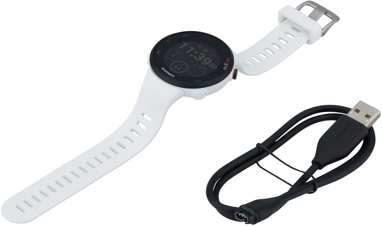 iris:violettHerstellernummern:weiß:010-02156-10iris:010-02156-11Lieferumfang:1 x Smartwatch Garmin Forerunner 45S1 x USB-Lade-/Datenkabel
