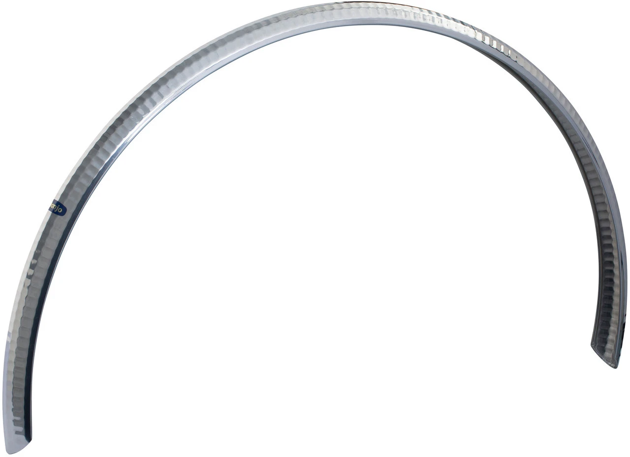 Das H31 Schutzblech Set von Honjo gehört zu den legendären auf Hochglanz polierten Klassikern aus Japan. Die Schutzbleche decken eine Reifenbreite von bis zu 35 mm ab. Mit dem besonders weit umfassenden Profil wird Spritzwasser einwandfrei im Blech gefangen gehalten. Das heißt, auch Füße und Kurbel bleiben trocken. Zudem verfügen die handgearbeiteten Schutzbleche von Honjo über eine edle Optik, ein geringes Gewicht und eine ausgesprochen lange Haltbarkeit. Das H31 gibt es auch als „hammered“ Version, bei Fans von klassischen Rädern eine besonders beliebte Optik.