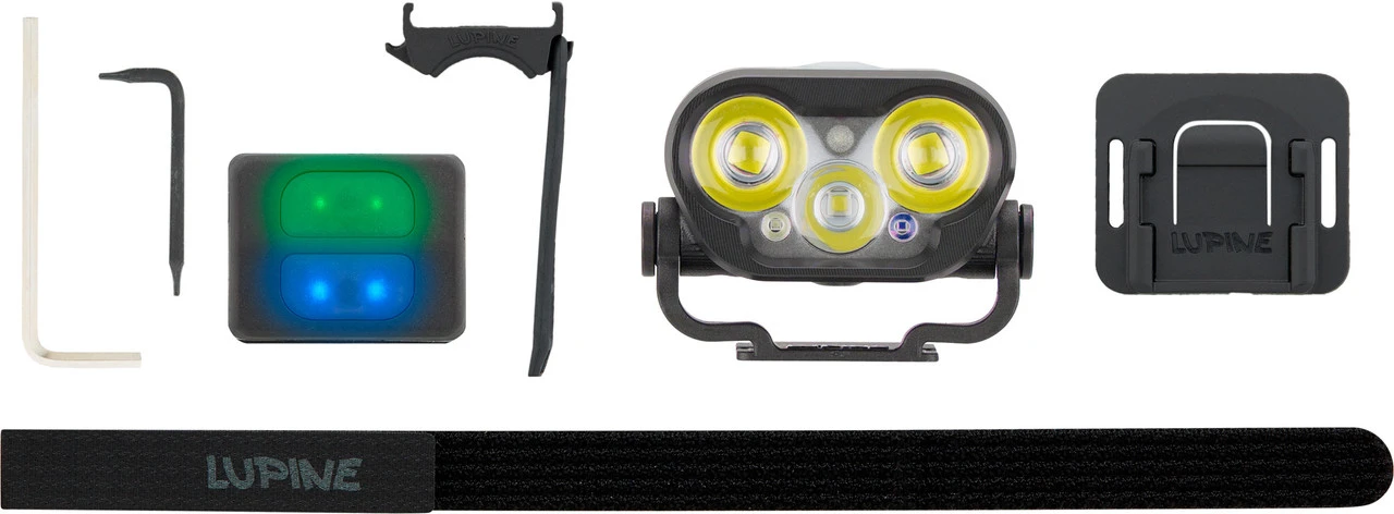 Lieferumfang:1 x Lampenkopf Lupine Blika1 x Fernbedienung Lupine Bluetooth1 x Lenkerhalterung Lupine Peppi V51 x Klettband Lupine