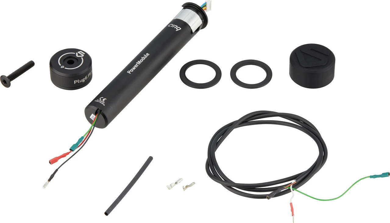 Lieferumfang:1 x Top Cap cinq Plug Plus1 x PowerModule cinq Plug Plus1 x Schutzkappe cinq Protection Cap1 x Kabelbaum cinq1 x Schraube M6x401 x Flachstecker1 x Schrumpfschlauch2 x Spacer