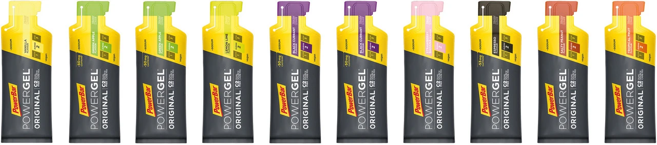 Vanilla:Konzentriertes Kohlenhydratgel für Sportler mit Natrium. (CH: Ergänzungsnahrung.) Vanille GeschmackStrawberry Banana:Konzentriertes Kohlenhydratgel für Sportler mit Natrium. (CH: Ergänzungsnahrung.) Erdbeer Banane GeschmackLemon Lime:Konzentriertes Kohlenhydratgel für Sportler mit Natrium. (CH: Ergänzungsnahrung.) Zitronen GeschmackSalty Peanut:Konzentriertes Kohlenhydratgel für Sportler mit Natrium. (CH: Ergänzungsnahrung.) Erdnuss GeschmackTropical Fruit:Konzentriertes Kohlenhydratgel für Sportler mit Natrium. (CH: Ergänzungsnahrung.) Tropische Früchte GeschmackBlack Currant – Caffeine:Konzentriertes Kohlenhydratgel für Sportler mit Koffein und Natrium. (CH: Ergänzungsnahrung.) Schwarze Johannisbeere GeschmackGreen Apple – Caffeine:Konzentriertes Kohlenhydratgel für Sportler mit Koffein und Natrium. (CH: Ergänzungsnahrung.) Grüner Apfel GeschmackEspresso – Caffeine:Konzentriertes Kohlenhydratgel für Sportler mit Koffein und Natrium. (CH: Ergänzungsnahrung.) Kaffee Geschmack