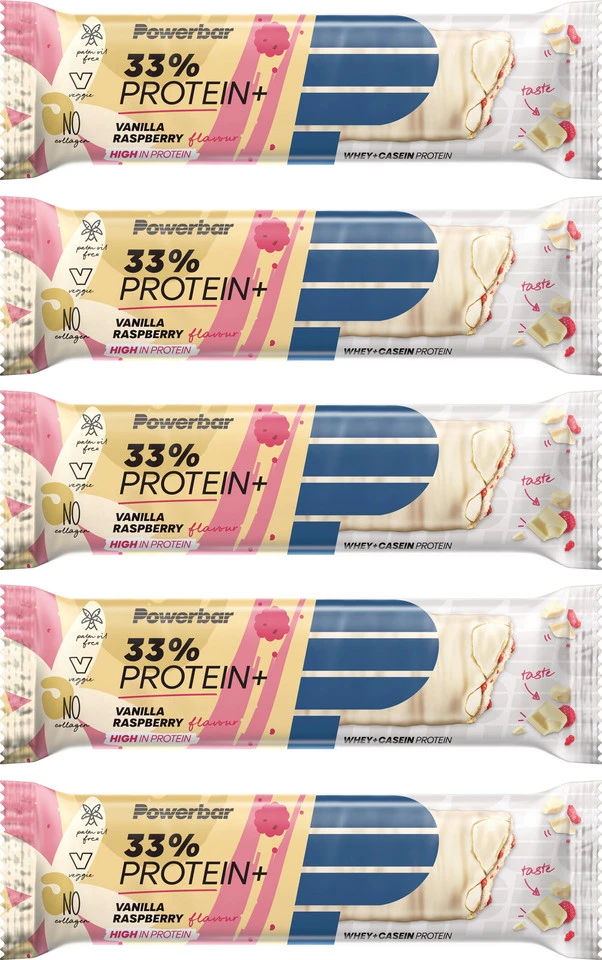 3 x Riegel PowerBar Protein Plus, Nettofüllmenge 270 g, chocolate peanut2 x Riegel PowerBar Protein Plus, Nettofüllmenge 180 g, vanilla-raspberry
