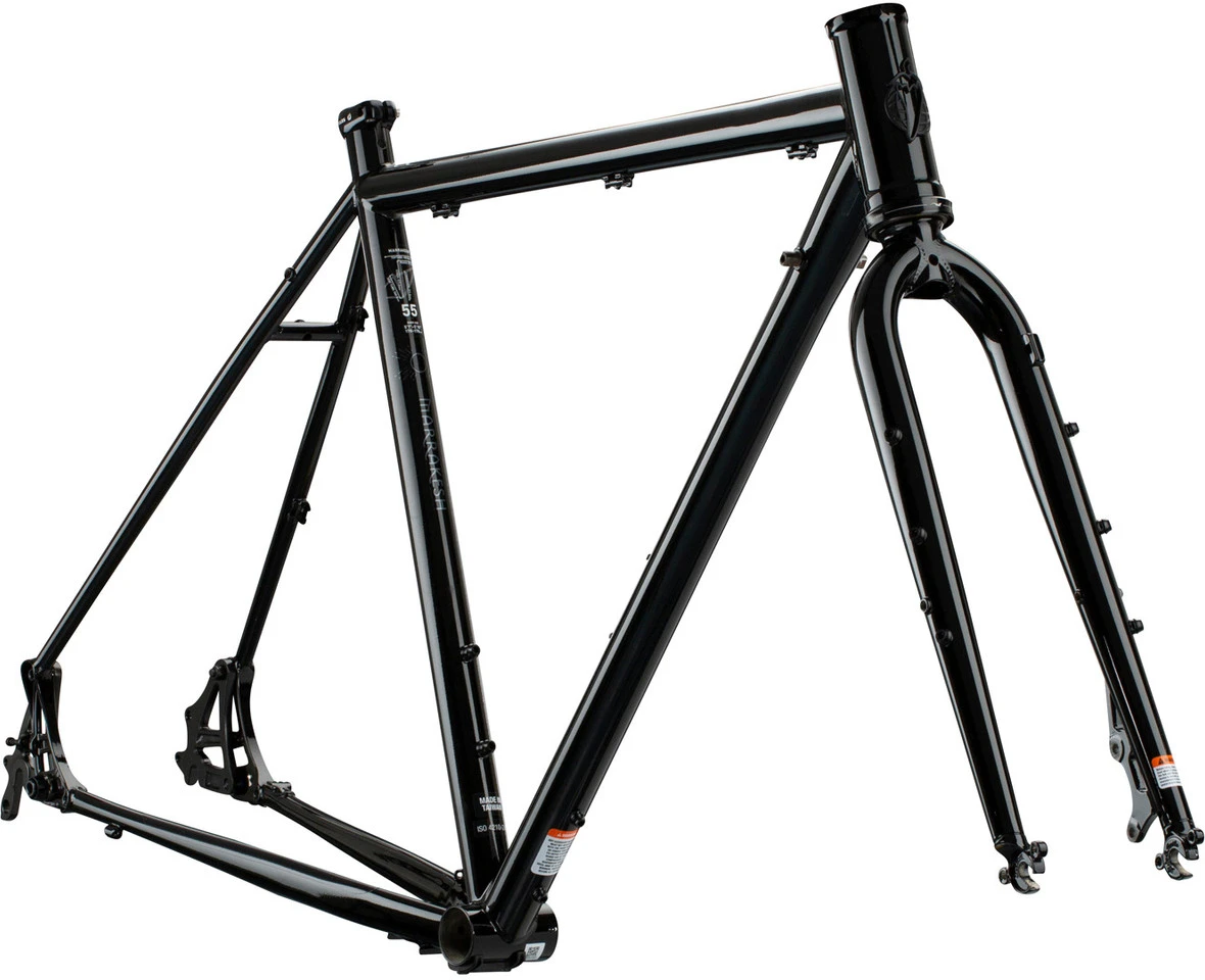 Mit dem Salsa Marrakesh Rahmenkit kannst Du auf Weltreise gehen. Es wurde für schwierige Touren mit viel Gepäck entwickelt und bleibt auch dann immer noch stabil und reagiert vorhersagbar, wenn es voll beladen ist. Türkischer Staub und thailändischer Schlamm machen an diesem Rahmen eine genauso gute Figur wie die ganzen Aufkleber, die Du aus fremden Ländern mitbringst. Erfüll Dir den Traum vom Jahr im Ausland und sammle Kilometer mit dem Marrakesh.