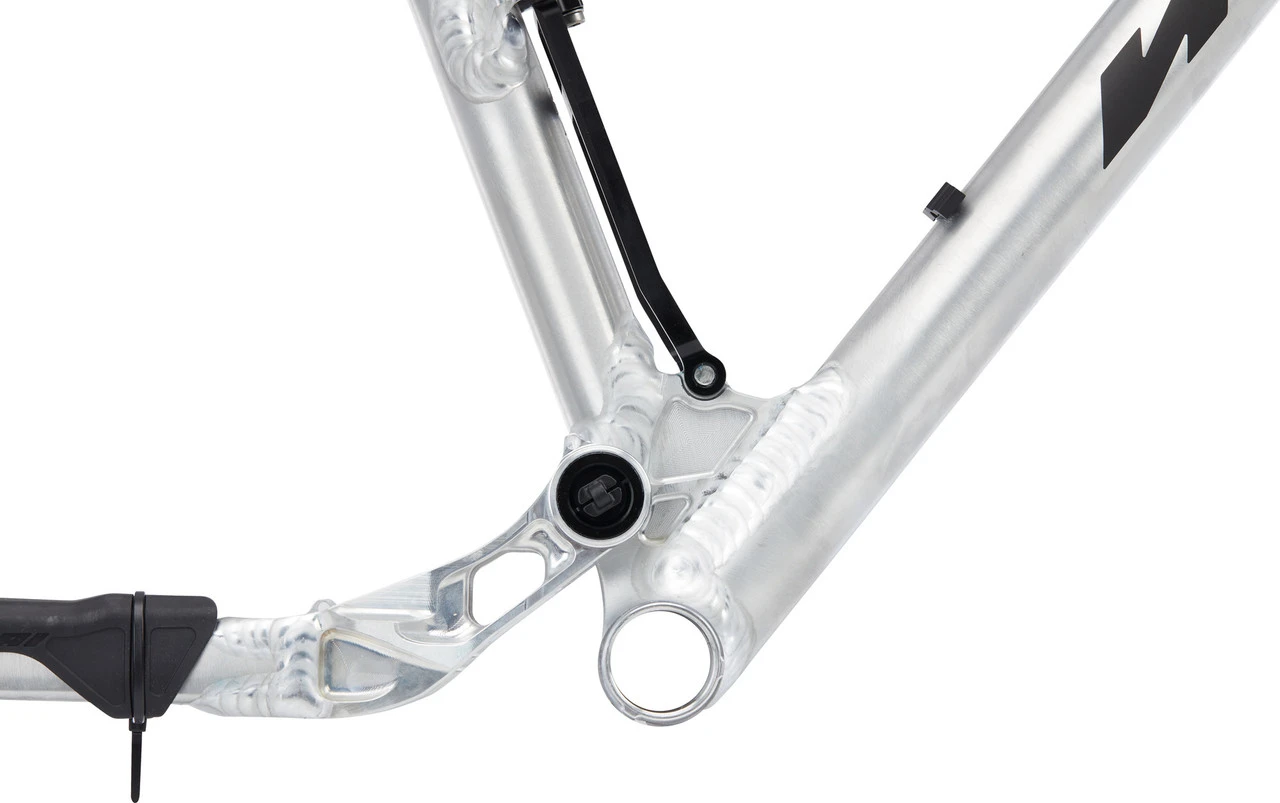 Der Saturn 14 Rahmen von Nicolai überzeugt auf All-Mountain-Trails durch Agilität, Laufruhe und Kletterfreudigkeit. Durch die Anpassung von Steuersatz und Druckstrebenmutator kann der Rahmen mit 27,5″ – oder 29″ -Laufrädern gefahren werden – hier ist der Mutator für 29″ bereits vorinstalliert. Beim Druckstrebenmutator handelt es sich um ein Einschraub-Element zwischen Sitzstrebe und Umlenkhebel, welches zur Feineinstellung der Geometrie (vor allem bei Verwendung von 27,5″ -Rädern) ausgetauscht werden kann. Der steilere Sitzwinkel und die längeren Kettenstreben halten bergauf den Druck auf dem Vorderrad, ein flacher Lenkwinkel und großer Reach sorgen für Laufruhe, wenn es abwärts geht. Vierfach gedichtete Kugellager minimieren den Wartungsbedarf, während der Boost-Hinterbau erhöhte Steifigkeit bietet und die Reifenfreiheit erhöht. Eine Besonderheit ist die Tension-Bar, welche zwischen Umlenkhebel und unterer Dämpferaufnahme erhöhte Belastungen aufnimmt. Durch die sorgfältige Verschweißung wird der Rahmen besonders robust und es entstehen die charakteristischen Nicolai Schweißnähte.