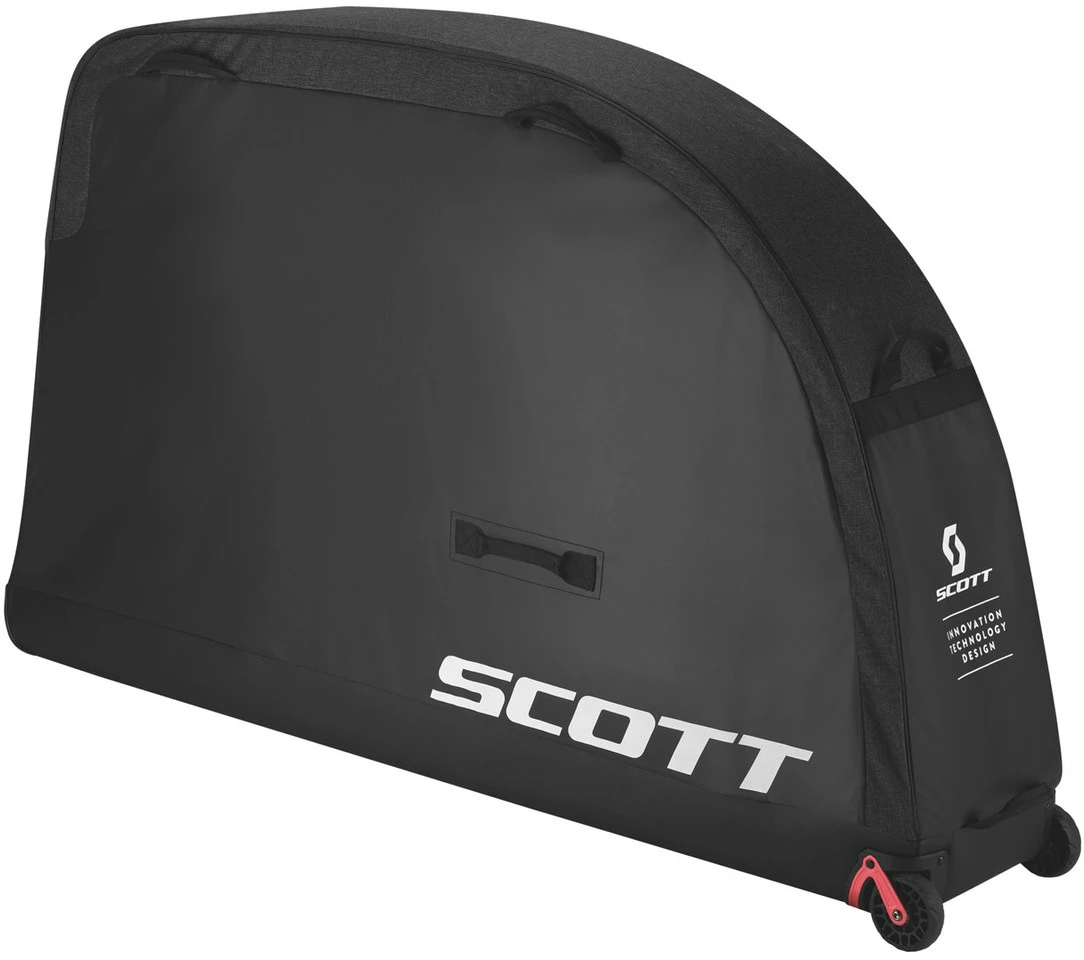 Das Scott Flaggschiff-Produkt, die Premium Bike Transporttasche, wurde völlig umdesignt und verfügt nun über eine federleichte, dabei aber robuste Zeltstangenkonstruktion auf Basis zusammenlegbarer Aluminiumstangen. Das innovative Design bietet deutlich mehr Schutz bei erheblich reduziertem Gewicht. Die Tasche verfügt über einen transportfreundlichen, stabilen Boden mit großen Rollen, zwei separate, große Laufradtaschen mit Schutzpolstern für die Naben, zusätzliche schützende Pads für Gabel und Rahmen mit integrierter Lenkerbefestigung, strategisch platzierte Griffe zum leichten Anheben und Ziehen sowie robuste Rundumpolsterung zum Schutz aller funktionalen Teile. Darüber hinaus wurde die Tasche auch so konzipiert, dass sie groß genug für die Bikes der neuen Generation mit längerem Radstand ist. Falls Du zusätzliche Pedale, Achsen oder Werkzeuge für Dein Abenteuer mitnehmen willst, kannst Du sie bequem in drei innenliegenden Stautaschen unterbringen.