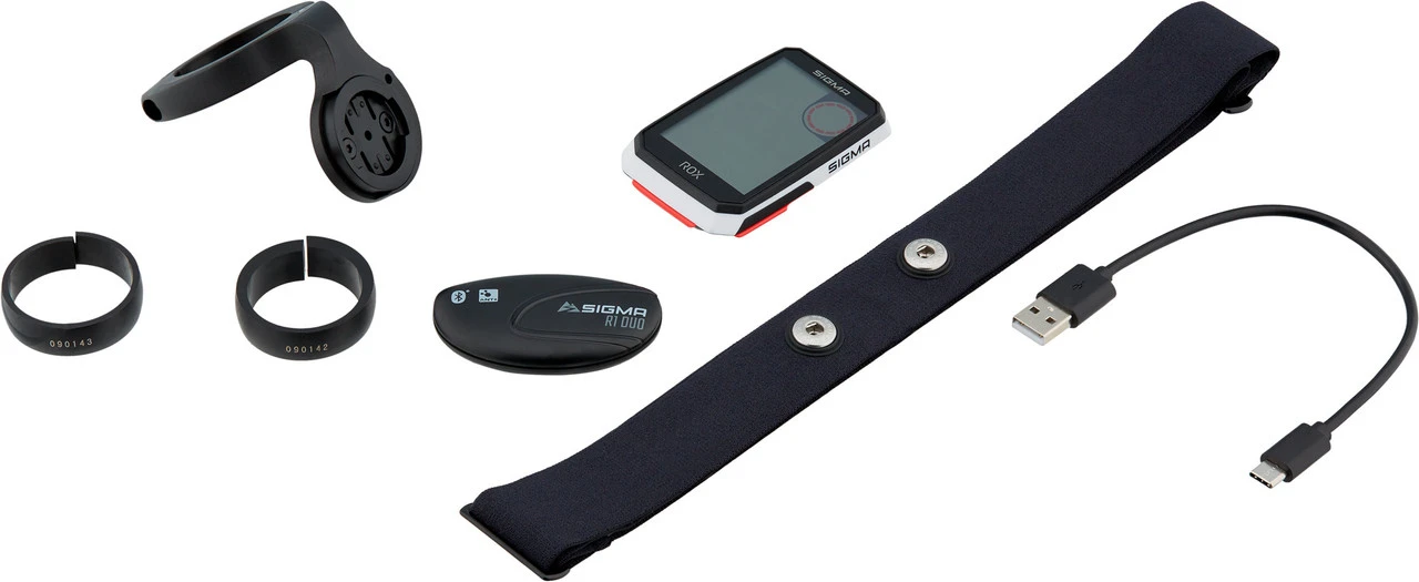 Herstellernummern:schwarz:1062weiß:1063Lieferumfang:1 x Trainingscomputer Sigma ROX 4.0 GPS1 x Herzfrequenz-Brustsensor Sigma R1 DUO Comfortex1 x Lenkerhalterung Sigma Overclamp Butler1 x USB-C-Kabel