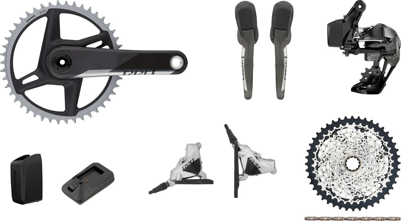 1 x Kurbelgarnitur SRAM Red 1 DUB 1×12-fach1 x Kassette SRAM XG-12711 x Kette SRAM Red 12-fach1 x Kettenschloss SRAM PowerLock1 Paar Schalt-/Bremsgriffe SRAM Red eTap AXS HRD1 Paar Scheibenbremsen SRAM Red eTap AXS (Flat Mount), montagefertig befüllt und entlüftet2 Paar Bremsbeläge SRAM organisch1 x Schaltwerk SRAM Red XPLR eTap AXS1 x Akku SRAM eTap / AXS1 x Akkuladegerät SRAM2 x Pedalunterlegscheibe2 x Transportsicherung SRAM1 x Bremsleitung SRAM 950 mm (VR)1 x Bremsleitung SRAM 1800 mm (HR)2 x Entlüftungsblock SRAM Bleed Block2 x S-Haken Jagwire2 x Insertpin2 x Olive1 x Torx-Schlüssel4 x Unterlegscheibe6 x Schraube1 x Einstelllehre SRAM Chain Gap Adjustment GaugeDirekt mitbestellen:BremsscheibenScheibenbremsadapter