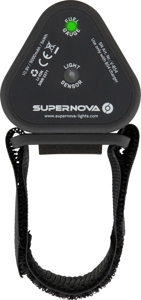 Im Akku ist ein präziser Battery Management Controller integriert, der temperaturunabhängig eine minutengenaue Restleuchtanzeige für alle Helligkeitsstufen in der Supernova App ermöglicht. Am Akku selbst wird der Status mit einer RGB LED angezeigt.