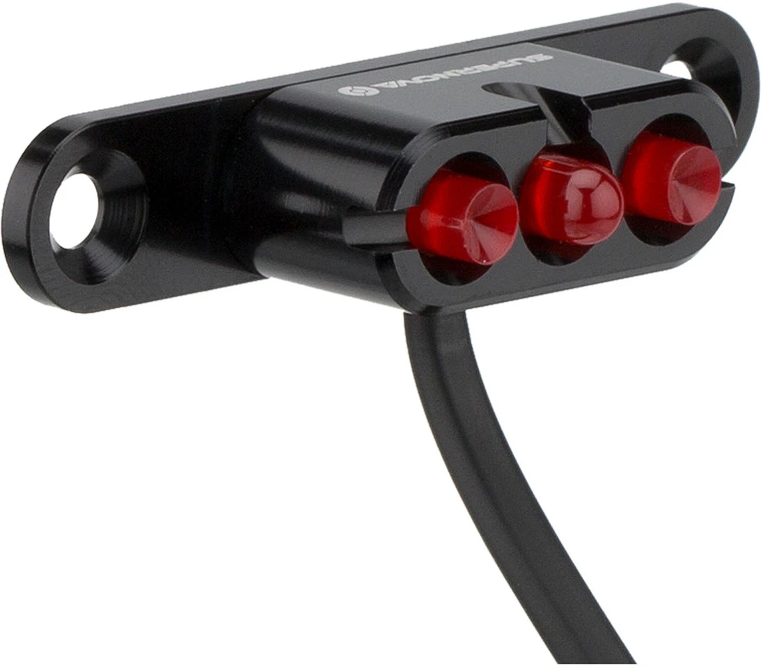 Wer vorne einen leistungsstarken Scheinwerfer anbringt, möchte auch nach hinten gleichermaßen gesehen und geschützt werden. Speziell dafür hat Supernova das E3 Tail Light 2 entwickelt. Mit seiner Twin Beam Technologie bietet es eine extrem helle Ausleuchtung nach hinten sowie eine sehr helle Seitenausleuchtung von 250°. Die Standlichtelektronik des puristischen Rücklichtes ist geschickt im Frontlicht integriert. Diese Innovation ermöglicht die extrem kleine Bauform. Das nur 12 Gramm leichte CNC-gefräste Rücklicht ist 100 % wasserdicht und eines der hellsten mit StVZO Zulassung. Die neue Seitenausleuchtung des Lichtsystems sorgt für noch mehr Sicherheit im Straßenverkehr.