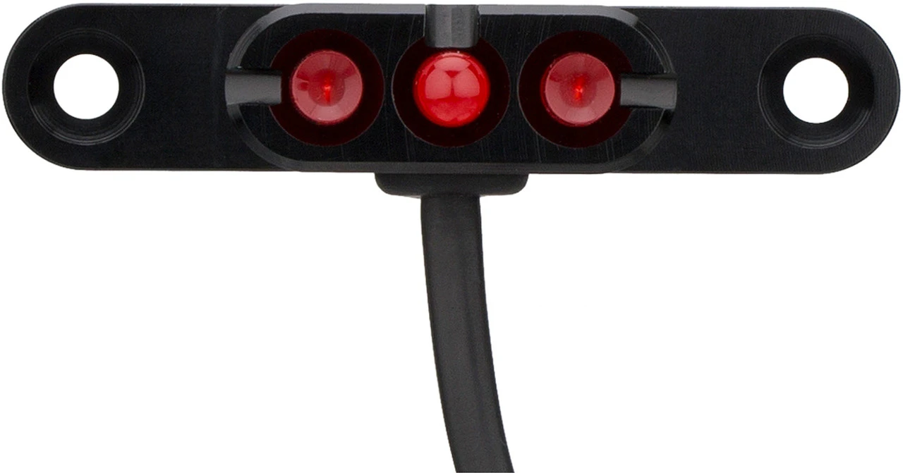 Spezifikationen:Ausführung:Rücklicht (rot)Montage:GepäckträgerLeuchtmittel:3 x LED (5 mm)Betriebsmittel:E3 Frontlampe, E-Bike-AkkuTechnische Daten:Maße (H x B x T):30 x 10 x 10 mmMaterial:Aluminium AL 6061Spannung:6 VFreigaben:Zulassung im Straßenverkehr:Ja, für Fahrräder nach §67 StVZOPrüfziffer:K~~915Features:Variante mit praktischem Kabelausgang nach untenfür 6-V-Gleichstrom an E3-Frontscheinwerfer oder E-Bike250 ° Abstrahlwinkel4 x heller als die Vorversion50mm Montagelochabstandwird vom E3-Frontscheinwerfer mit Standlichtstrom versorgtPedelecbetrieb: Energieversorgung über E-Bike-SystemKabellänge zum Frontlicht/Akku: 95 cmzugelassen im Bereich der StVOHerstellernummer:N-TK2FR-BLK