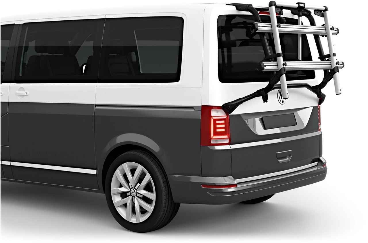 Mit dem Thule WanderWay 2 Fahrradträger für die Heckklappe am VW T6 kannst Du auf unkomplizierte Weise bis zu zwei Fahrräder transportieren. Mit entsprechenden Adaptern kannst Du sogar bis zu vier Fahrräder gleichzeitig aufladen.